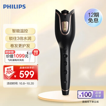 飞利浦(PHILIPS)全自动电卷发棒 升级款 SenseIQ技术 防烫造型 25mm BHB882/05 黑色