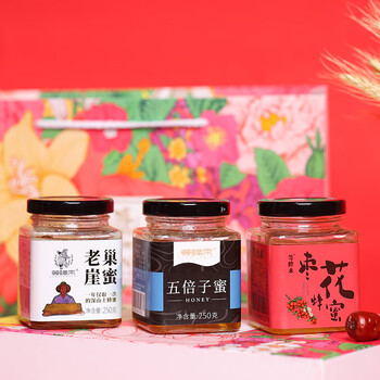 等蜂来中秋礼品盒秦岭土蜂蜜礼盒老巢崖蜜250g+五倍子蜂蜜250g+枣花蜂蜜250g三味组合装团购福利企业关怀礼