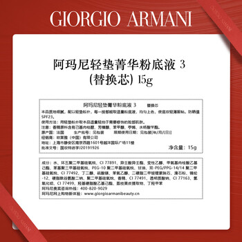 阿玛尼红气垫替换芯#3自然白15g 控油持妆遮瑕轻薄 礼盒生日礼物送女友