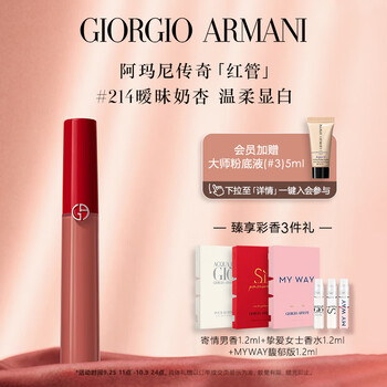 阿玛尼红管214唇釉#奶杏色 丝绒哑光显白口红 礼盒生日礼物送女友