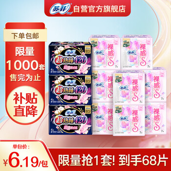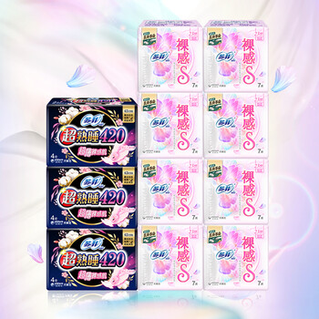 苏菲裸感S超熟睡超强吸收姨妈卫生巾日夜组合11包68片(日夜56P+12P)