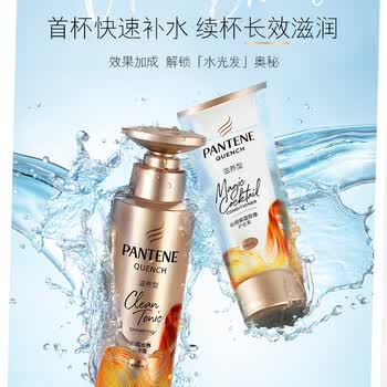 潘婷沁润水养洗发水530ml+保湿双萃护发素200ml-滋养型 送旅行装洗发水50ml*2 控油 无硅油 新旧包装随机发货