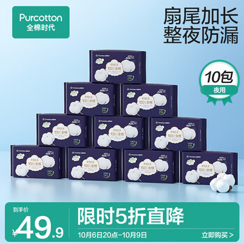 全棉时代 奈丝公主卫生巾超净吸系列亲肤超薄超长夜用420MM 3片/袋*10